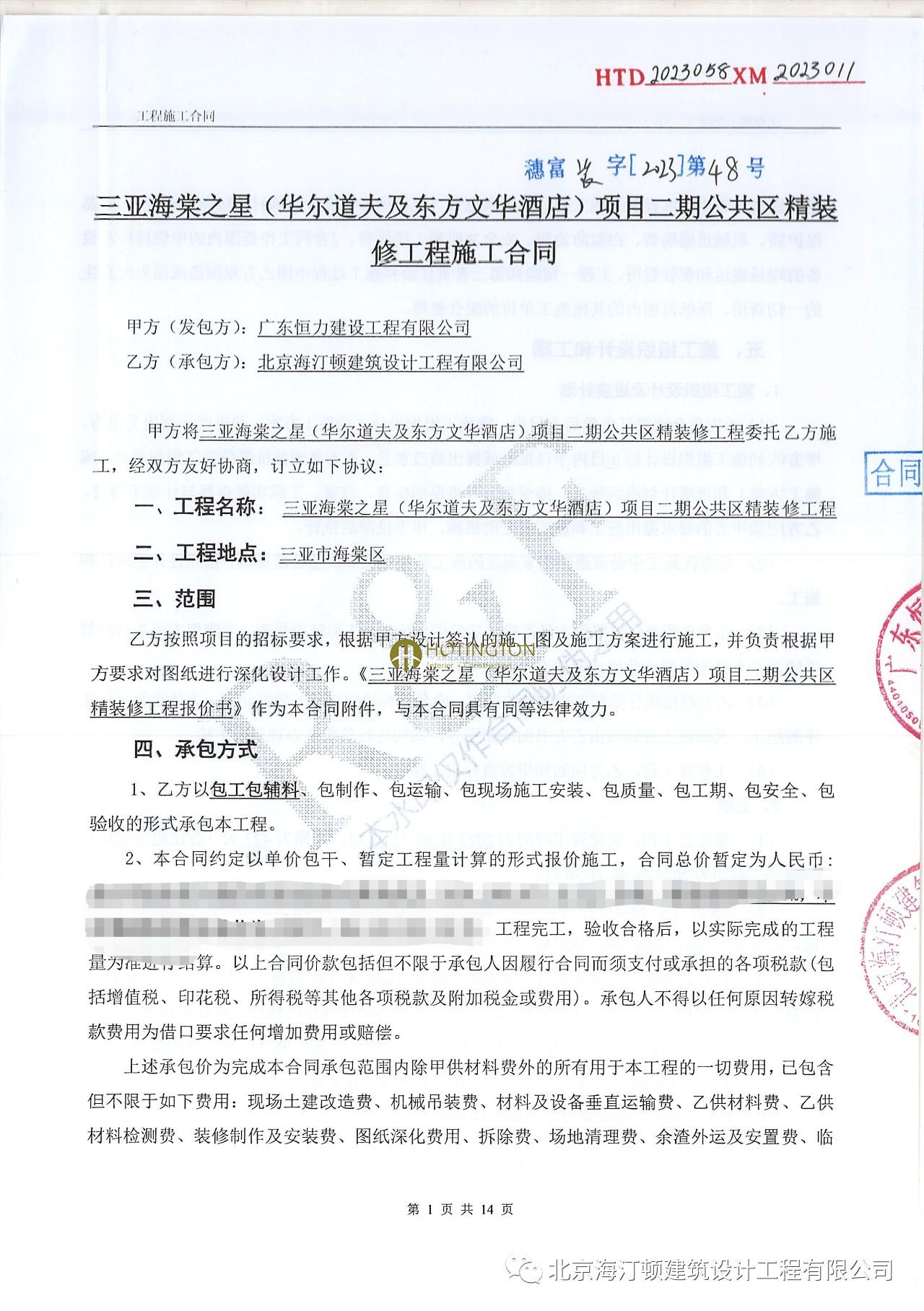 【中标喜报】我司成功中标三亚海棠之星(华尔道夫及东方文华酒店)项目二期公共区精装修工程。在此,我们对为该项目成功中标付出辛勤努力的所有员工表示热烈的祝贺与感谢!
